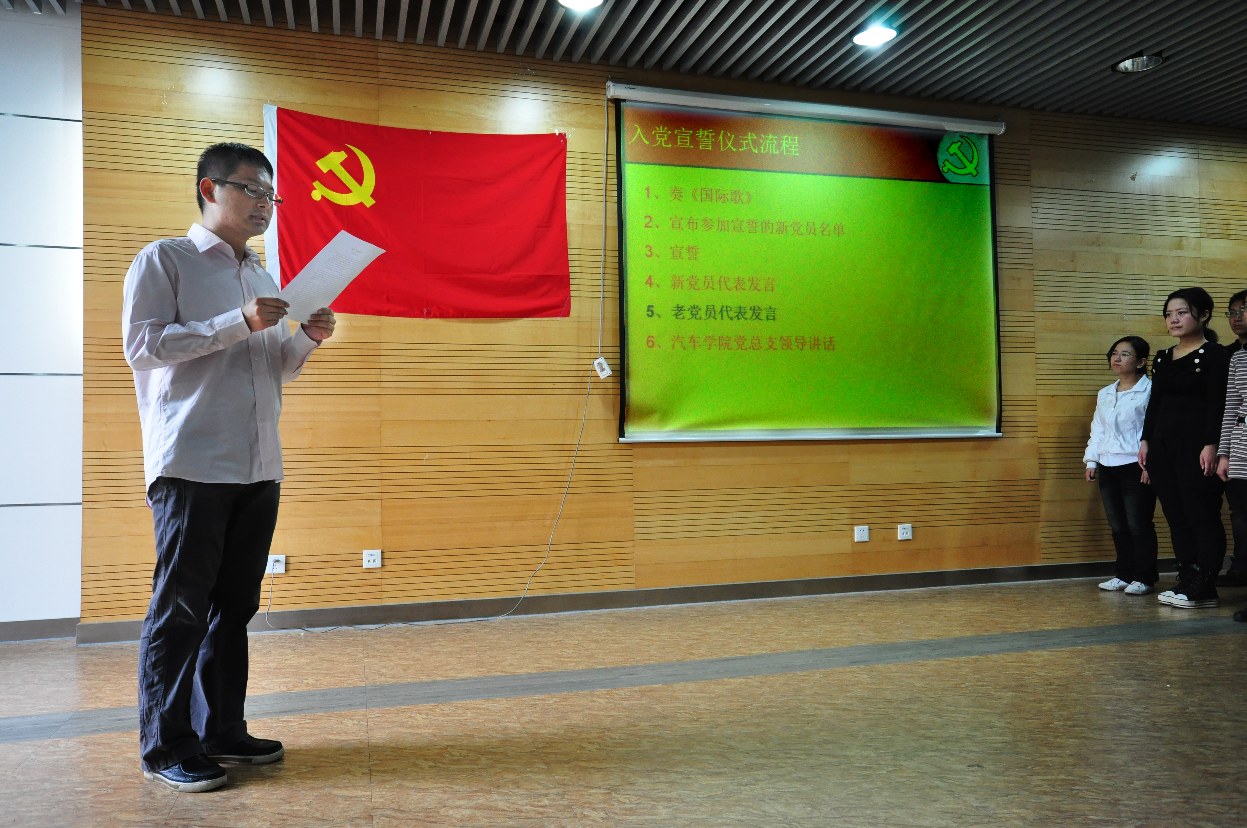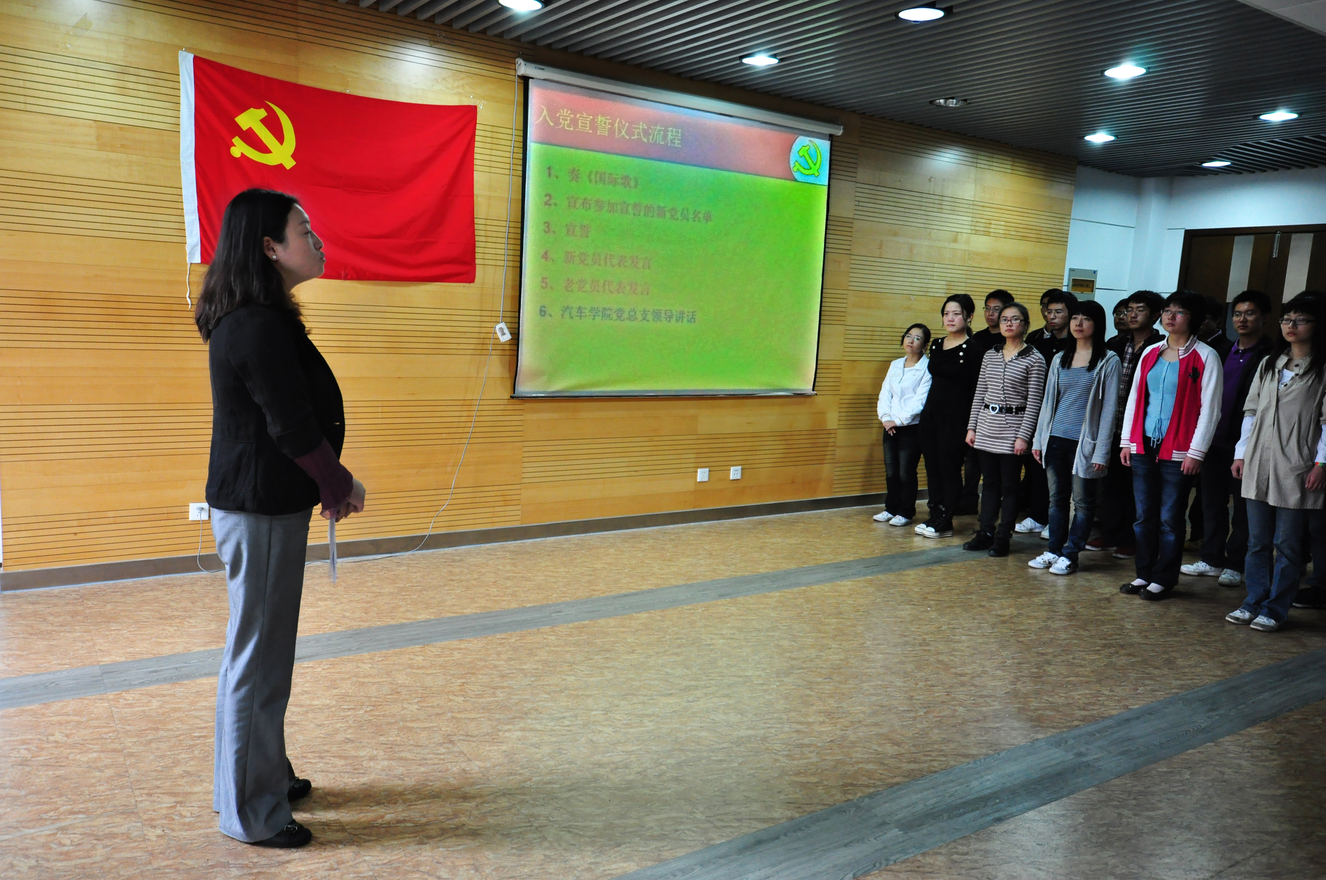 汽车学院每学期举行一次入党宣誓仪式,组织上一学期发展的新党员集体进行宣誓,让新党员通过这样的仪式教育更加严肃认真地对待“中共党员”这一光荣称号以及其中包含的责任。
