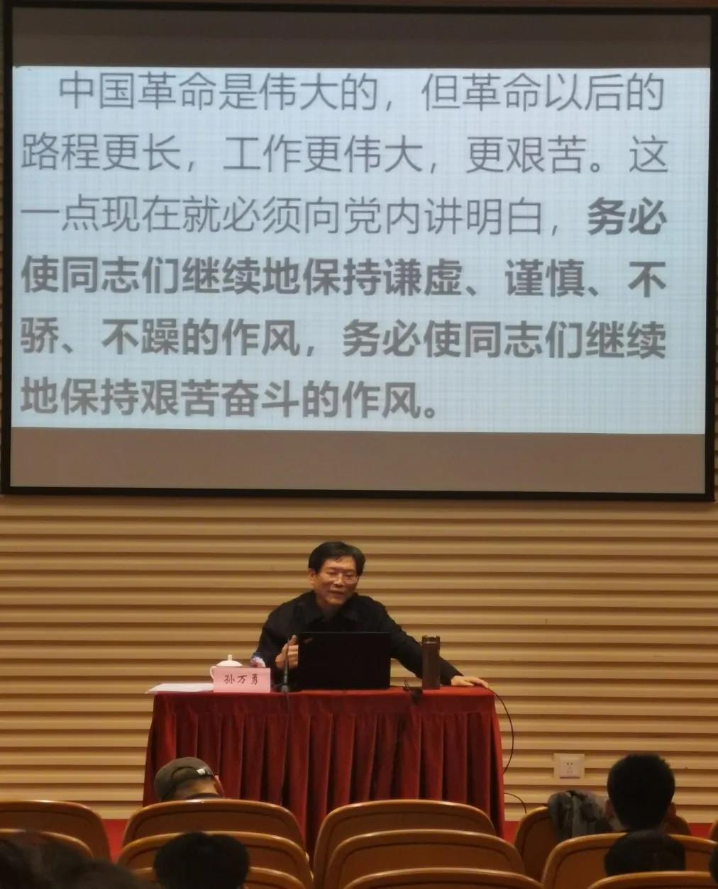 孙万勇老师从“历史为何选择西柏坡”“西柏坡精神是我们伟大斗争的捷径”“西柏坡精神的特殊品质和时代价值”“西柏坡精神的本质是两个敢于两个务必”这四个方面为我们讲解了西柏坡精神的内核与意义。孙老师说道,西柏坡精神是中国共产党人在革命时期铸造的一座精神丰碑,是我党的宝贵精神财富,是凝聚党心民心,激励我们进一步奋斗的强大精神力量。孙老师强调,今天我们比历史上任何时期都更接近,也更有信心和能力实现中华民族伟大复兴的目标。站在新时代历史方位上,我们要大力弘扬西柏坡精神,以戒骄戒躁谦虚谨慎的科学态度和艰苦奋斗的精神状态,以更加昂扬的斗志和扎实的作风,砥砺奋进新征程,建功立业新时代。