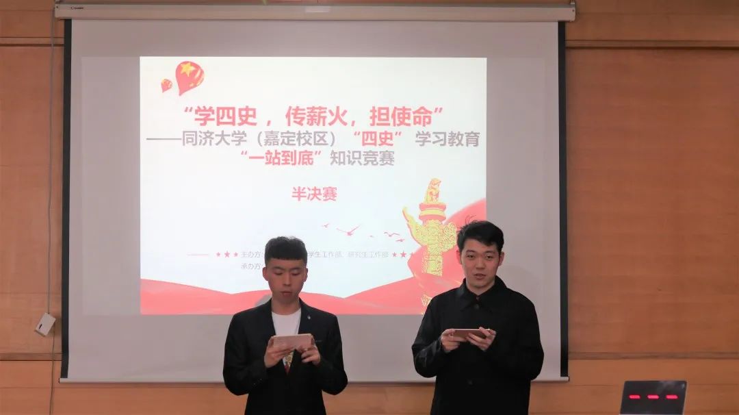 2020年12月15日下午,同济大学(嘉定校区) “四史”学习教育“一站到底”知识竞赛(半决赛)在嘉定校区汽车学院宁远馆顺利举行。本次知识竞赛由同济大学党委学生工作部、研究生工作部主办,汽车学院党委承办。