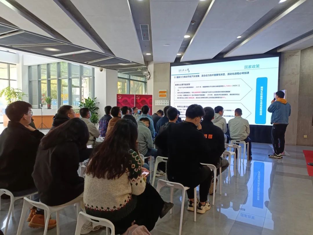 随后,由研究生第十一党支部的孟硕同带来题为“混合动力系统主流技术发展现状”的分享。他从国家政策走向和国内外主要车企的技术路线及发展趋势两个方面对混合动力系统主流技术进行了介绍,详细分析了美国、欧洲、日本等地的主流混动系统及发展趋势,并对国内主要车企的混动技术路线进行了总结与分析。分享最后指出,由于具备多方面的优势,双电机DHT系统或将成为主流技术路线。