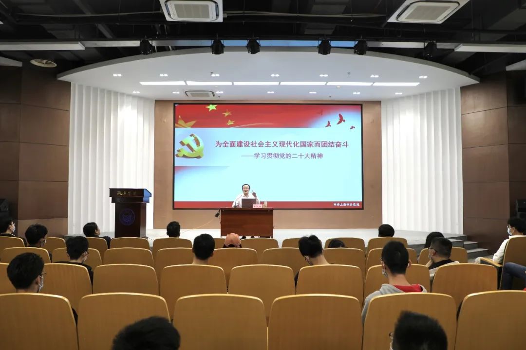 11月4日,汽车学院第四十八期“同车行”党委特邀报告于新能源汽车工程中心二楼报告厅举行,上海市党校机关党委副书记、经济学教研部副主任李敦瑞老师为学院师生党员带来“为全面建设社会主义现代化国家而团结奋斗——学习贯彻党的二十大精神”主题报告。汽车学院党委书记曹静老师主持报告,学院党委班子成员与全院师生党员代表共同参加报告会。