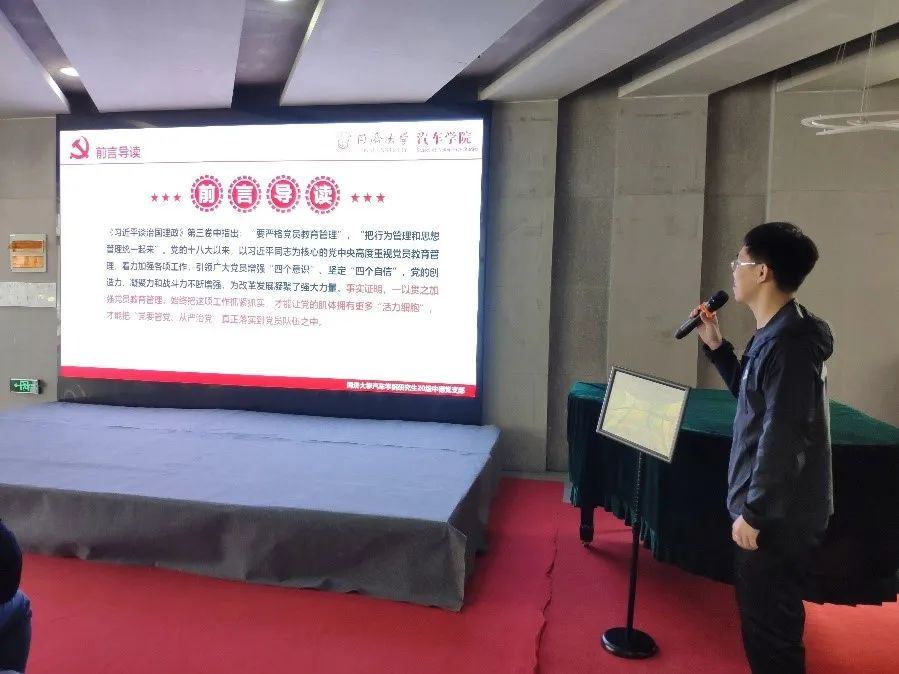 11月2日,2021年第19期(总第61期)汽车学院“同车行”专题理论学习在汽车学院“科技·艺术·人文”大厅顺利举行。本次理论学习活动由汽车学院党委主办,研究生第十六党支部承办。参加本次学习的有研究生第十六党支部和研究生第十七党支部党支部。本次活动分为党史学习和汽车新技术学习两大部分,活动的主持人是研究生第十六党支部高赟海。