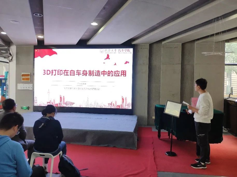 活动第二部分由研究生第十六党支部凌虎同志带领大家学习了3D打印在白车身制造中的应用。