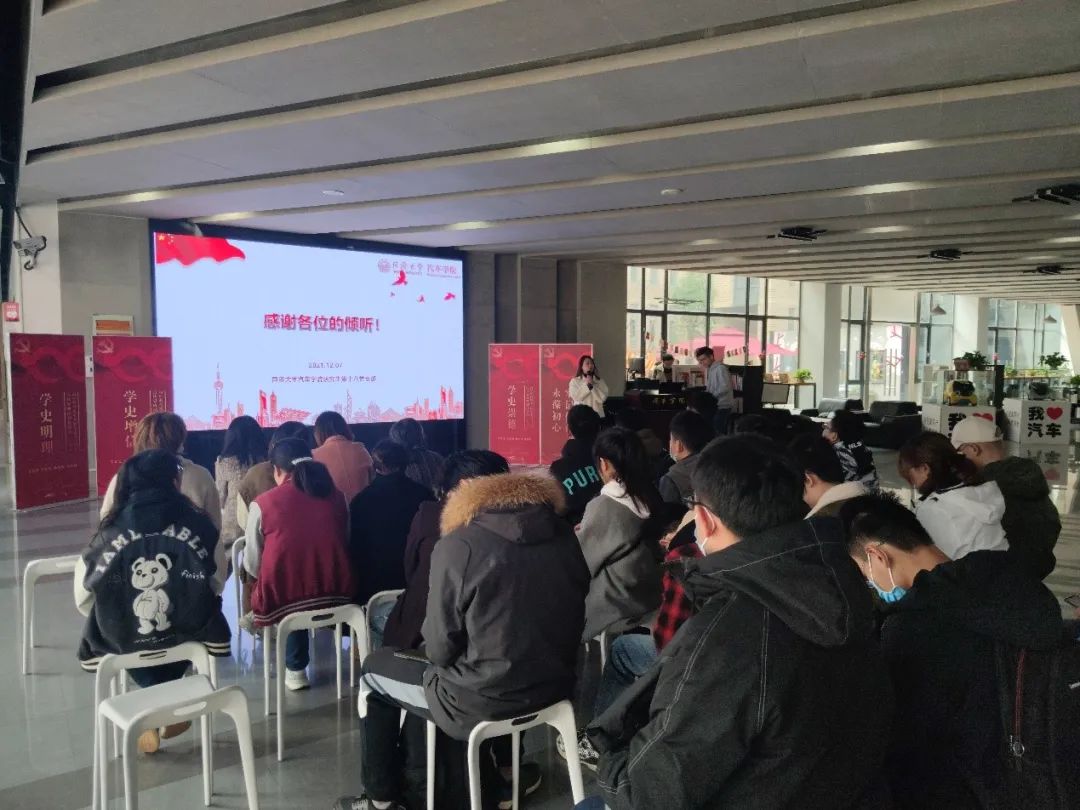 12月7日,2021年第23期(总第65期)汽车学院“同车行”专题理论学习在汽车学院一楼大厅顺利举行。本次理论学习活动由汽车学院党委主办,汽车学院研究生第十八党支部支部书记戢杨杰同志主持。参加本次学习的有:教工第五党支部、研究生第十八党支部和研究生第十四党支部。