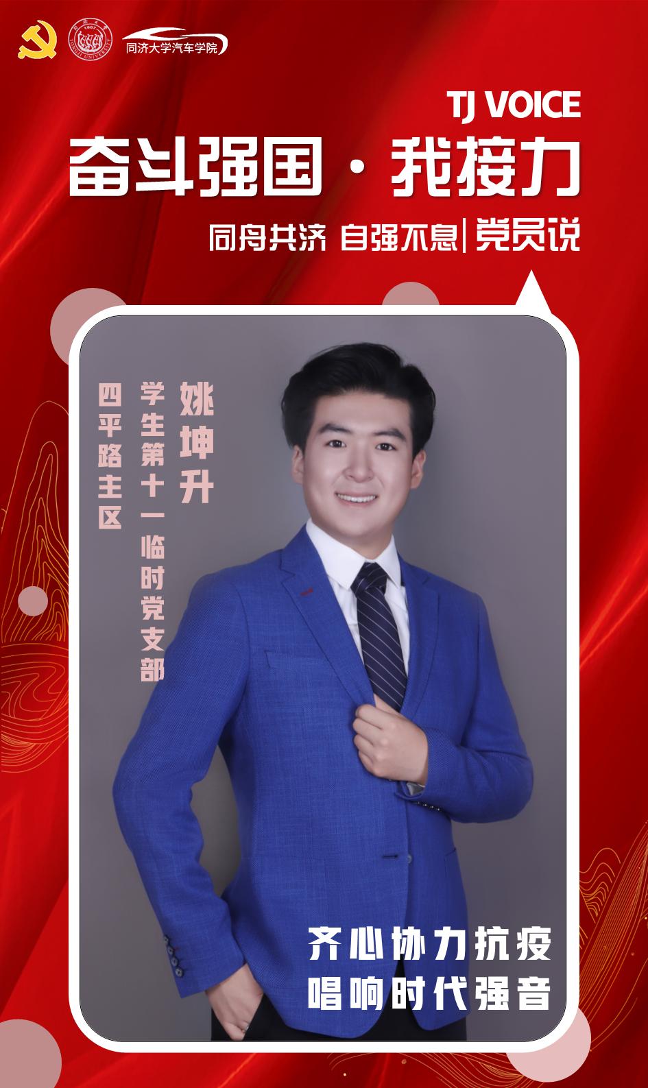 此次疫情,每位在校的同济人都不是旁观者,大家亲身经历了千钧一发的应急时刻,也共同见证了同济师生的守望相助和守土尽责。本次党员说讲述了同济人,特别是同济汽车人的责任和担当。