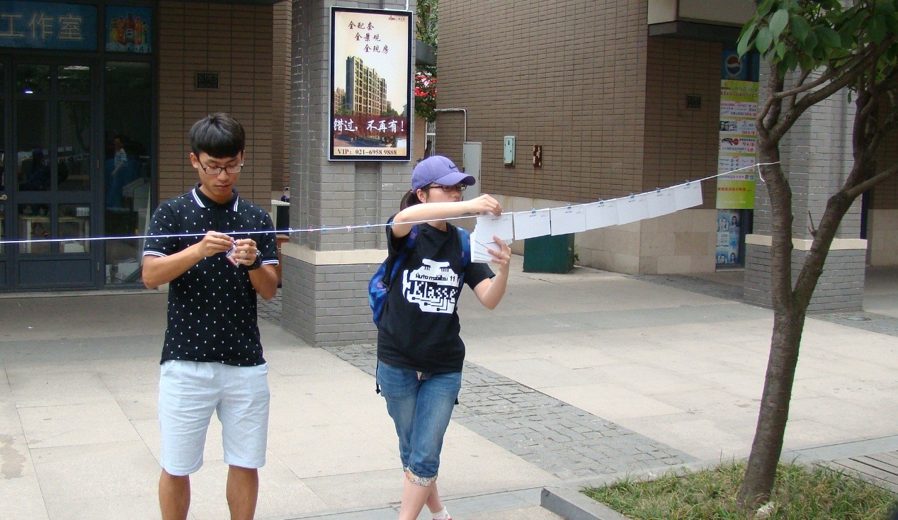 在正午闷热的天气下,为了能够赶在人流最多之前布置好所有明信片,11级本科支部的工作人员迅速展开了紧锣密鼓的准备工作中,不到10分钟,展出会场就布置完毕。很多准备去吃饭的同学路过时也会顺便观看一下明信片内朝气蓬勃的汽院学子,更有汽车学院的同学开始在明信片中找自己参与的活动,并用手机拍照留念。