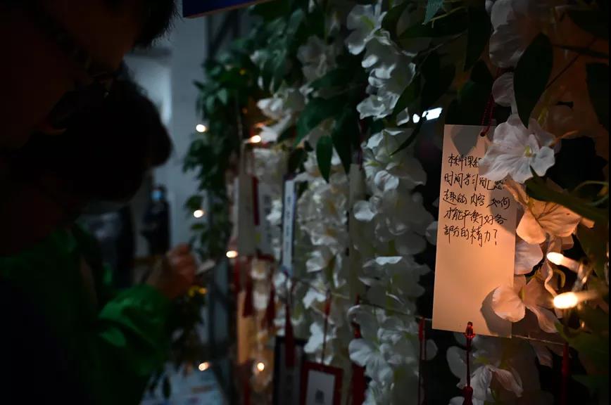 在“心愿百事通”环节,通过书写悬挂学业心愿,开展结对联学,搭建起同学们之间互帮互助的桥梁,促进学生间的共同进步。