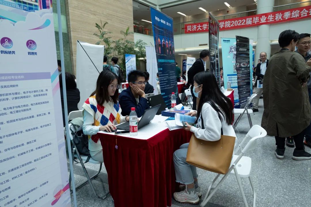 10月19日下午,同济大学汽车学院2022届毕业生综合招聘会在嘉定校区济人楼成功举办,49家汽车行业知名企业参加招聘会。300余名学生陆续参会。