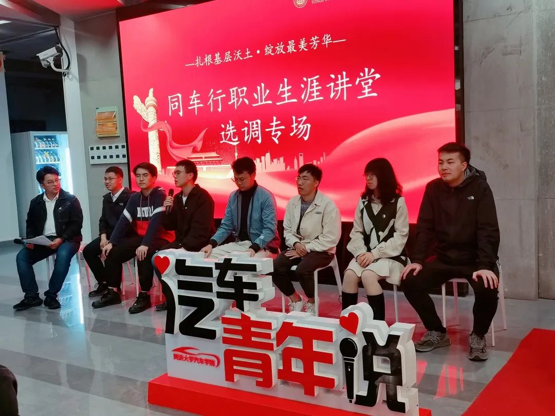 4月26日,同济大学汽车学院于一楼大厅内举行了“同车行”职业生涯讲堂选调专场活动,本次活动由汽车学院就业专职辅导员王尔根主持。同济大学学生就业指导中心主任王凌凌受邀参加、汽车学院党委副书记葛畅、2023届7位选调生代表和部分在校生参加本次活动。