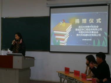 捐赠仪式上,贵州省普诚正华工程咨询有限公司为西藏班捐赠现金2万元,贵州天地通科技有限公司捐赠现金9000元并为同学们争取到中国光华科技基金会捐赠的图书共计504个品种、1277册,图书总价6万元。