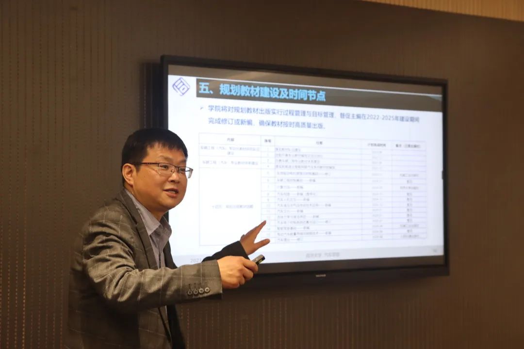随后赵治国副院长从学院“十四五”教材建设目标、“十四五”重点建设任务、学院教材研究及编写队伍建设等方面介绍了同济大学汽车学院的教材建设情况和规划,希望双方加强合作,为汽车人才培养提供优质的教材。