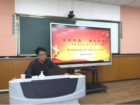 5月11日下午,学院党委副书记吴忠红为教师第二党支部全体党员讲授了题为《学史明理 鉴往知来——学党史 悟思想 办实事 开新局》党课。