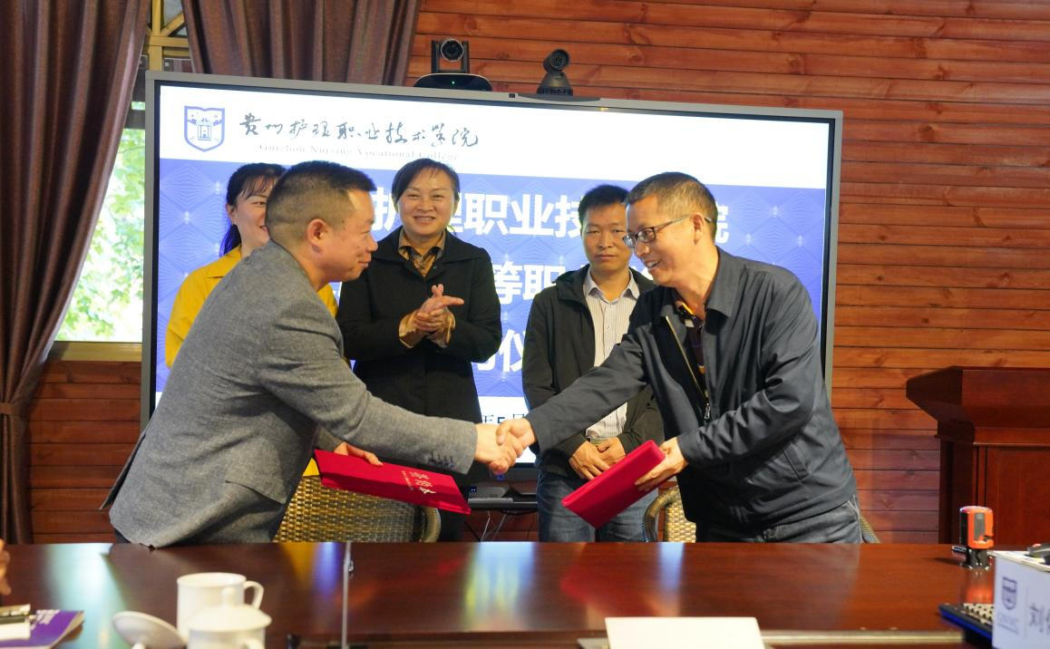 随后在天使阁会议室召开签约仪式暨座谈会。潘忠伦表示,本次会议的主要目的是学习贯彻中共贵州省第十三次党代会精神、新国发2号文件、《中华人民共和国职业教育法》,以及“技能贵州”“健康贵州”建设等有关决策部署和要求,签署中高职协同发展合作协议,共同商讨推进中高职招生就业、专业建设、师资建设、社会服务和学校治理五大协同高质量发展。