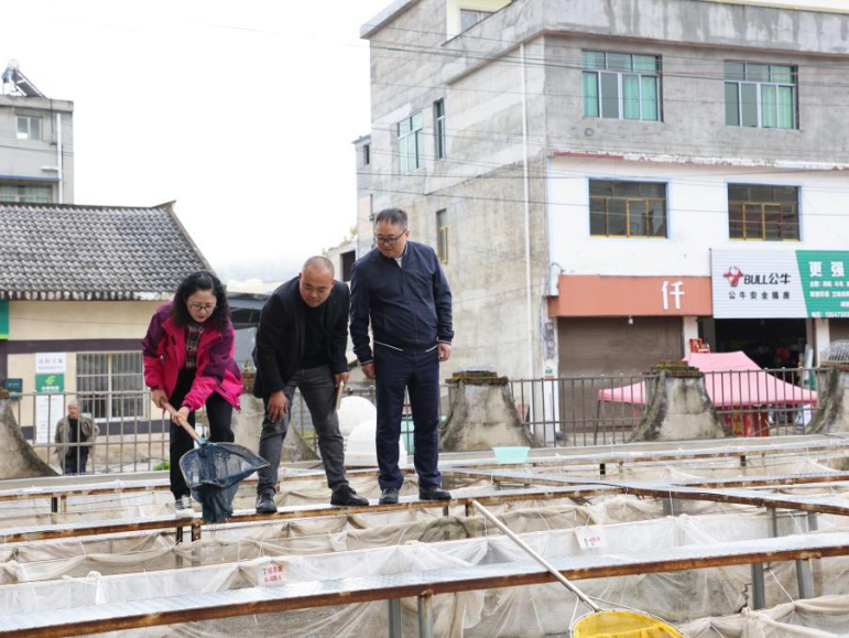 江智霞一行调研哪嗙社区鱼苗培育基地