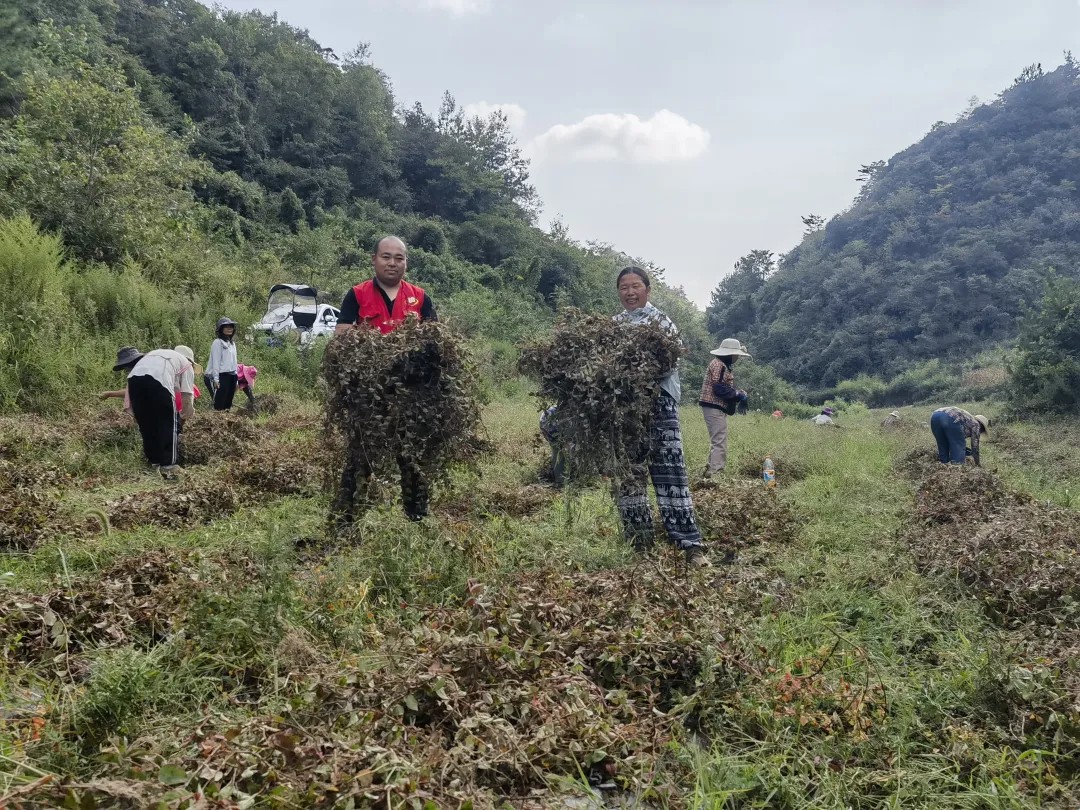 哪嗙社区驻村工作队帮助群众采收头花蓼
