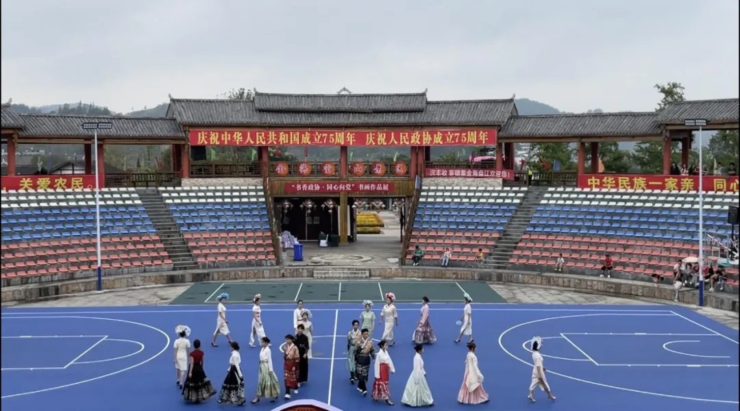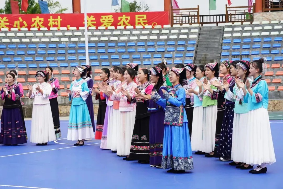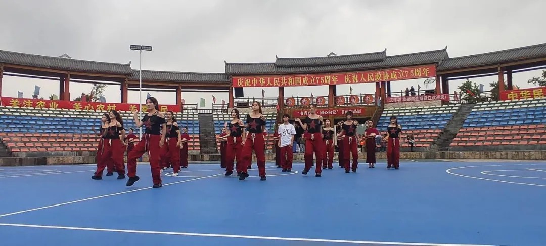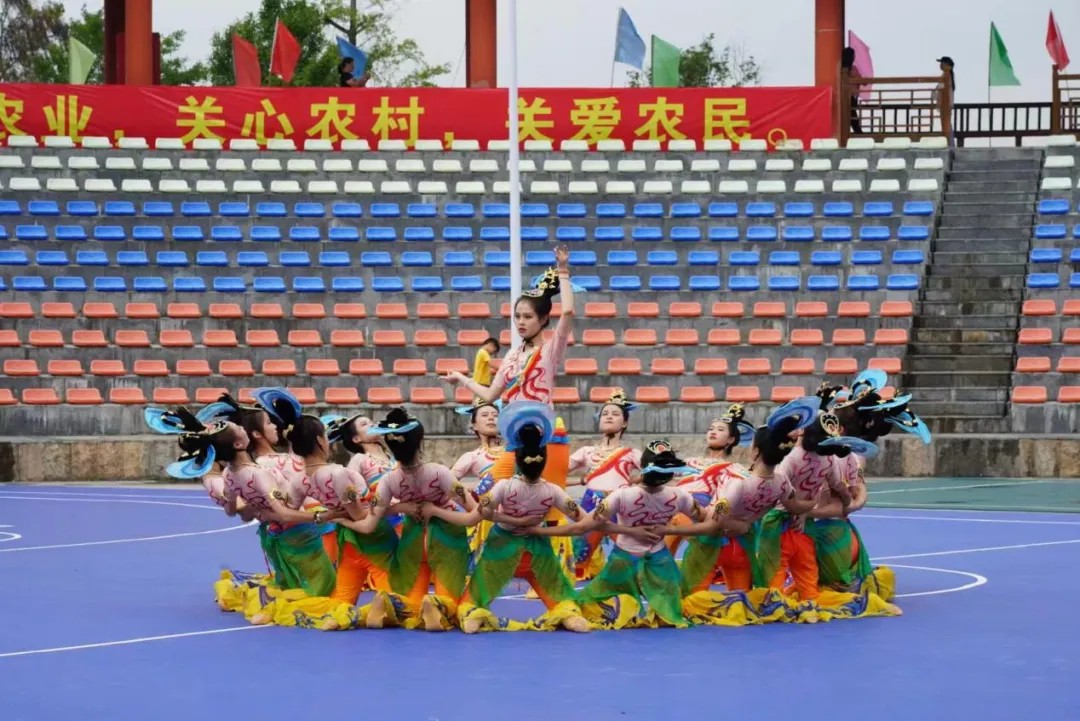 9月28日上午,金海雪山音寨演艺广场,阳光和煦,秋风送爽,丰收锣鼓随着缕缕桂香声声敲响。伟德国际1946一百多名学子,踏着优美的旋律翩翩起舞,为乡村振兴文化活动注入了青春活力。