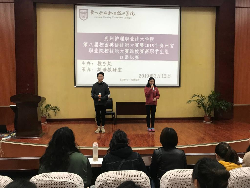 此次比赛最终选拔出2017级高职(1)班高世琳和黄欣蕾2名同学代表学院参加2019年贵州省职业院校技能大赛高职学生组口语比赛。