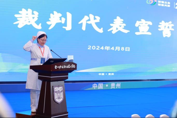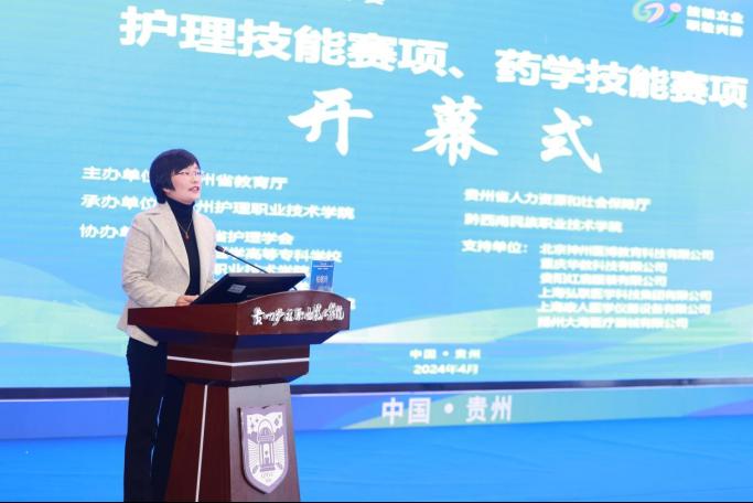4月8日至9日,2024年贵州省职业院校技能大赛暨全国职业院校技能大赛选拔赛护理技能赛项、药学技能赛项在我院金海校区学术交流中心举行。贵州省教育厅职成处二级调研员孙永红,贵州省职业院校技能大赛执委会特聘专家唐荥,大赛裁判长代表皮巧红,黔西南民族职业技术学院党委副书记、院长李光武,我院领导班子成员,护理技能赛项、药学技能赛项40所院校领队、161名选手、领队及指导老师们出席开幕式。开幕式由我院党委委员、副院长柏晓玲主持。