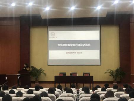 贵州医科大学医学检验学院党委书记蒋红梅主讲题目为《加强高校教学能力建设之浅思》。蒋书记分别从教研室的管理、教研室的职责、教研室主任职责、关于教学改革的思考以及教学改革的13条思路为大家详细解读了高校教学能力建设的发展态势和特点。授课内容条理清晰、深入浅出,帮助我院教师多方面地了解了“教师教学能力建设”的相关内容,提及的各种经验、方法实用而新颖,让在场的教师们深受启发、获益匪浅,对提升我院教师教育教学能力起到了重要促进作用。