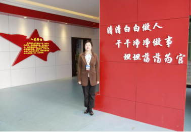 我院党委书记黄亚励在警示教育展厅留影