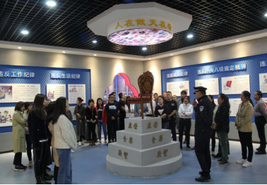 我院教职工排队有序参观警示教育基地