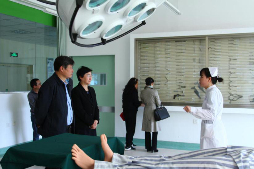 王爱华书记一行先后参观了我院人体生命科学馆、实训中心、道德讲堂、音乐厅、学生素养基地、学术交流厅、茶艺教室等。我院先进的职业教育理念、专业文化气息浓厚的教学环境、对学生体贴入微的关爱、高度专业化的教育教学设施给来访客人留下深刻印象。