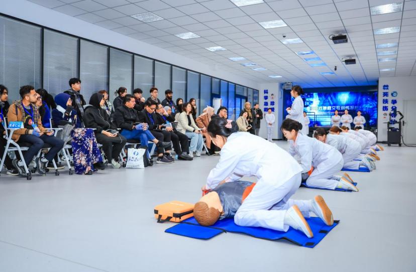 随后,马来西亚师生前往我院急危重症虚拟仿真产教融合实训基地和人体生命科学馆进行参观学习。在急危重症虚拟仿真实训基地,他们学习急救科普知识、操作急救虚拟仿真软件、练习急救技能;在人体生命科学馆,他们了解了人体结构,探索人体奥妙,使其感悟“人体之美美不胜收,人体奥妙奥妙无穷”。
