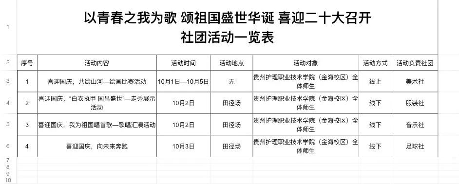 社团活动一览表
