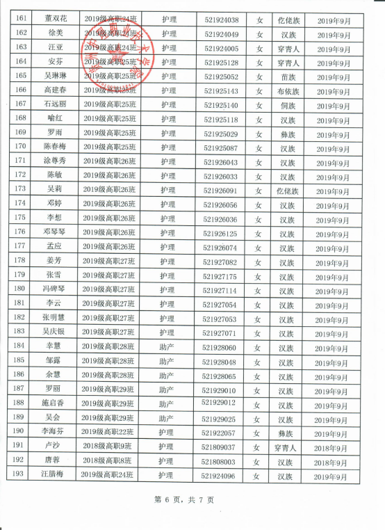 2019-2020学年国家励志奖学金推荐名单公示(院级)