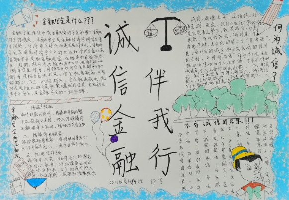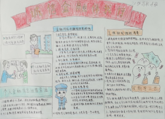 在今年的诚信教育主题活动中,学院通过调查问卷、主题班会、绘画活动等形式,对广大高职学生广泛宣传了国家助学贷款政策及诚信、金融知识的普及和宣传。