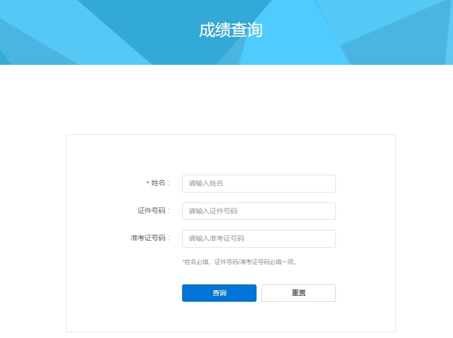 第二步:输入“姓名、证件号码”或者“姓名、准考证号码” ,点击“查询” 即可显示成绩查询结果。