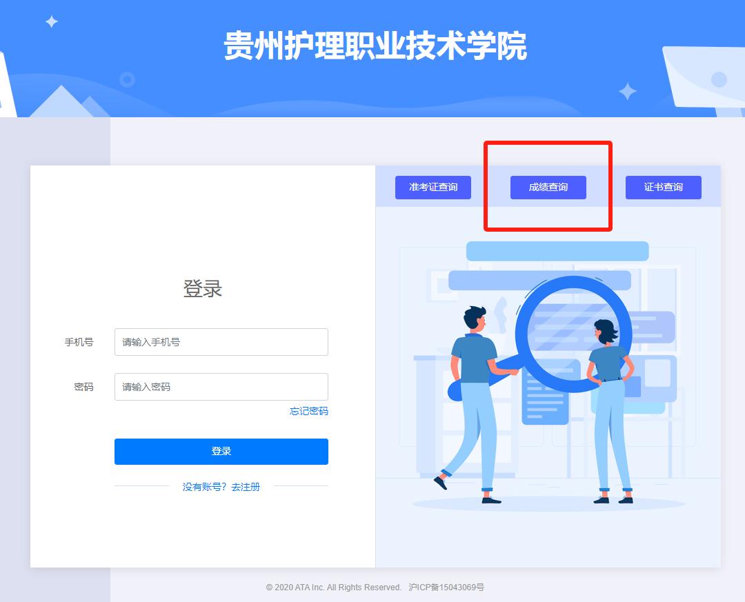 第一步:打开浏览器,输入查询地址,点击“成绩查询”。