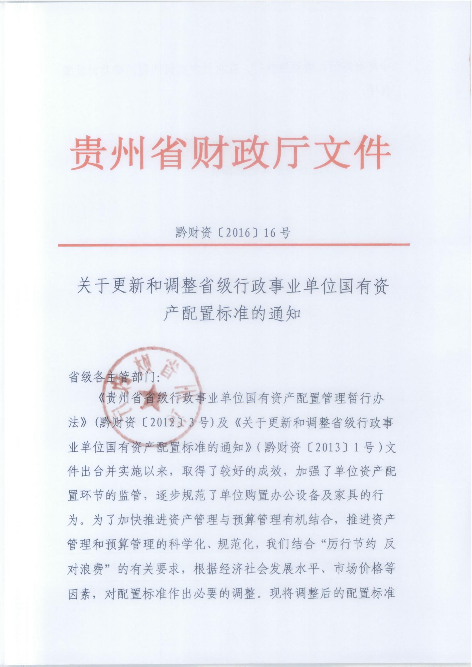 《关于更新和调整省级行政事业单位国有资产配置标准的通知》 (黔财资[2016]16号).pdf