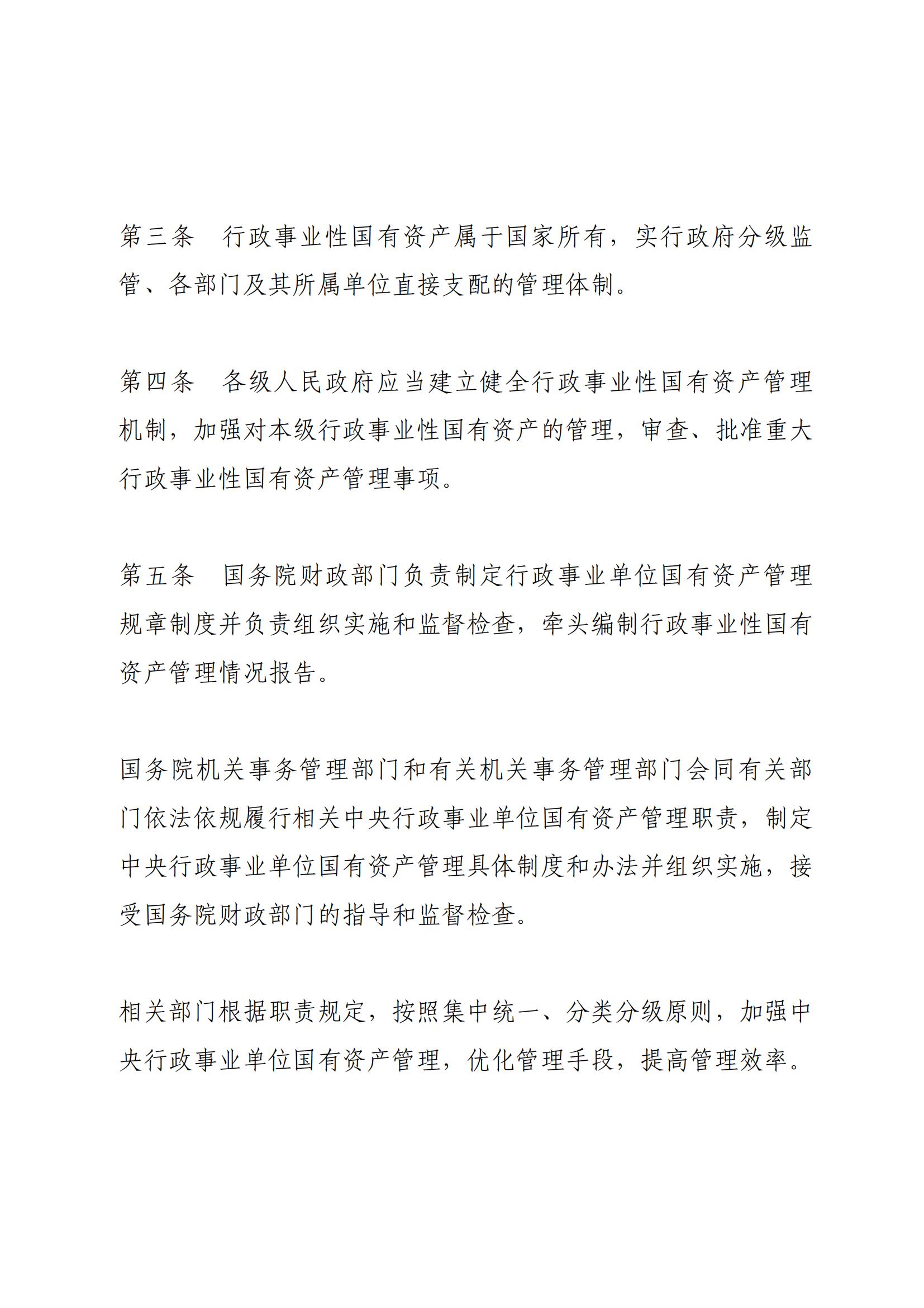 《行政事业性国有资产管理条例》 (国务院第738号令)