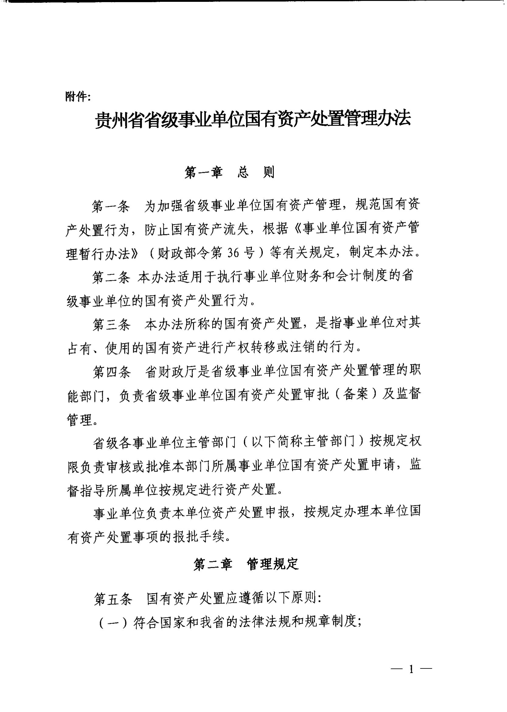 贵州省财政厅关于印发《贵州省省级事业单位国有资产处置管理办法》的通知 ( 黔财资【2016】21号).pdf