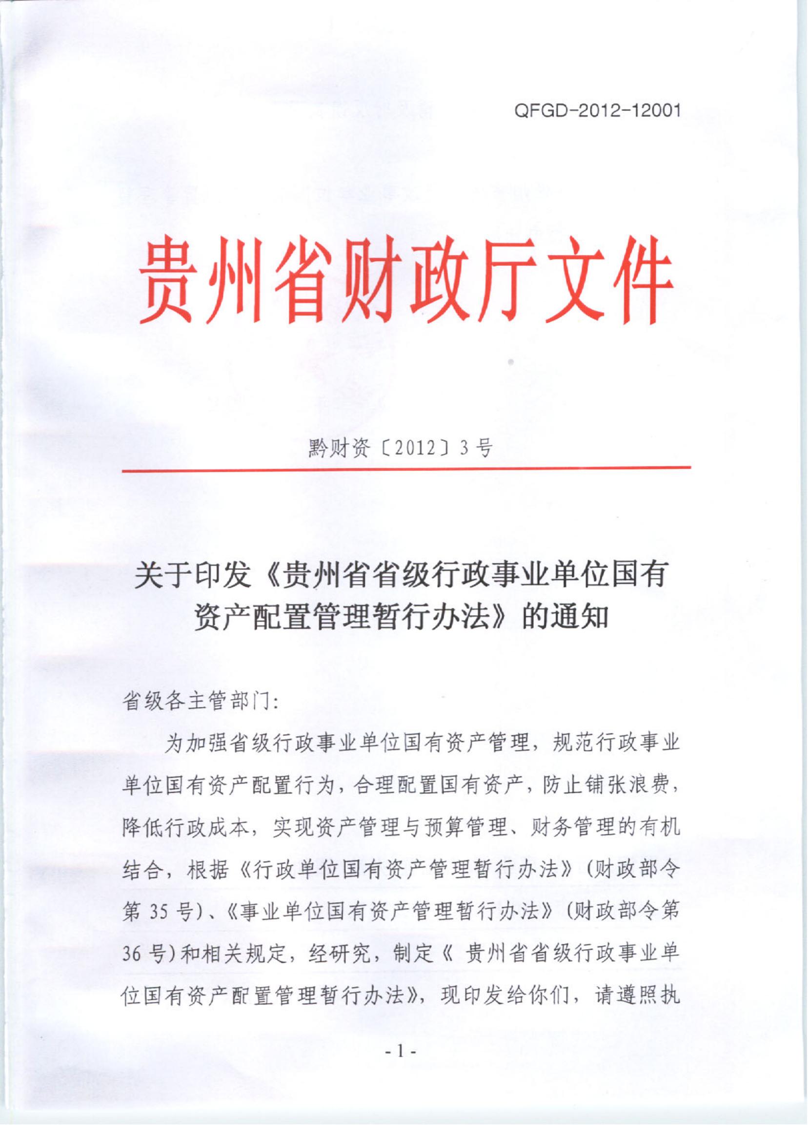 贵州省财政厅关于印发《贵州省省级行政事业单位国有资产配置管理暂行办法》的通知.pdf