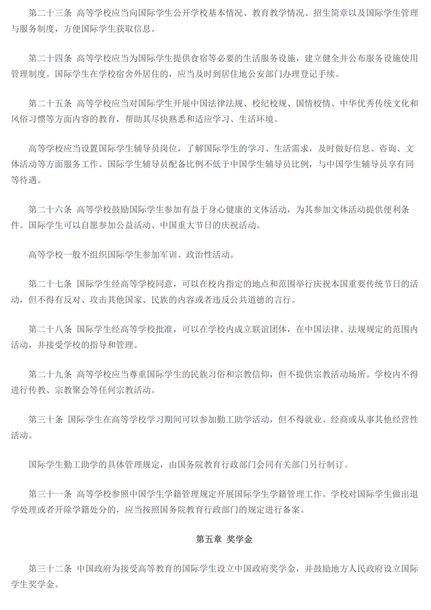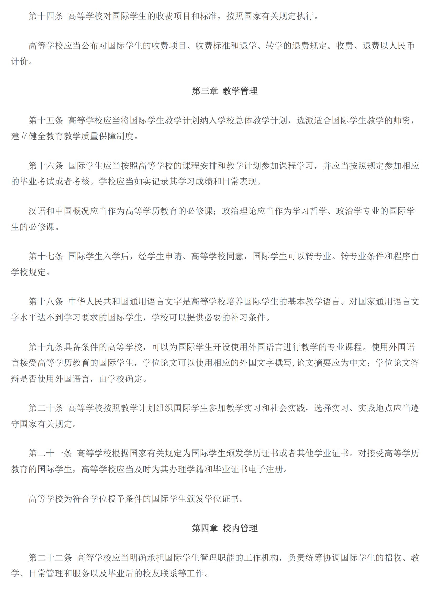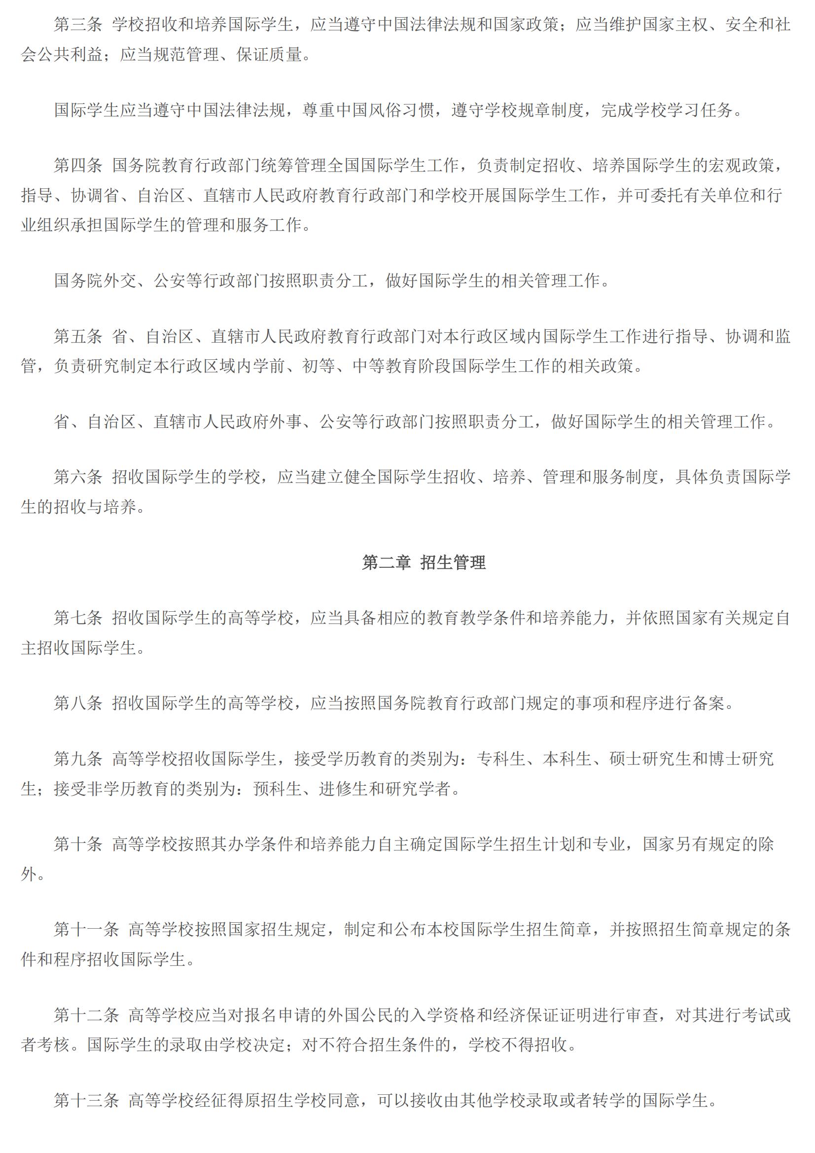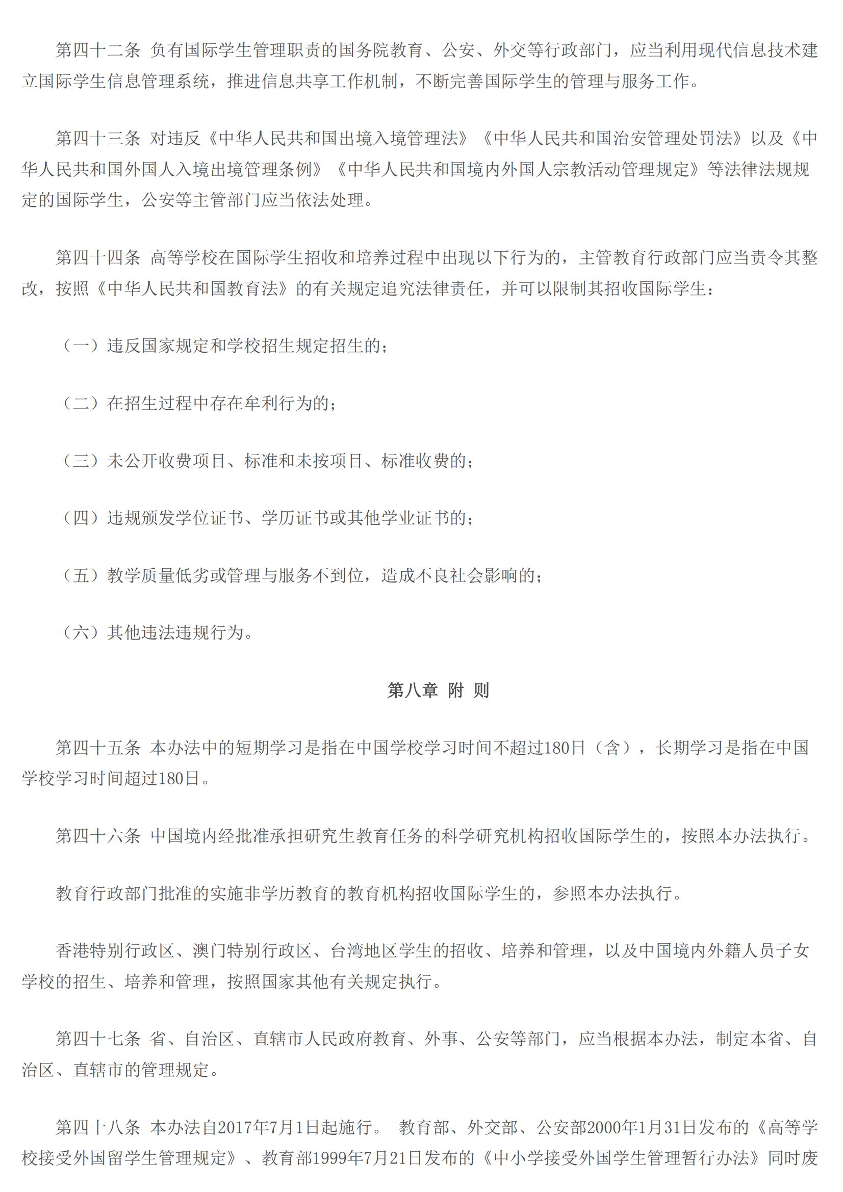 教育部令第42号:学校招收和培养国际学生管理办法