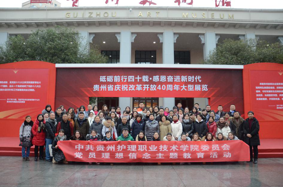 12月29日下午,我院于贵州美术馆开展“牢记嘱托 感恩奋进”党员理想信念主题教育活动,学院党委书记黄亚励,党委副书记李俊华,校领导张正红带领导学院全体党员、入党积极分子、递交入党申请书教师、思政教师以及班组长以上人员、硕士研究生学历以上人员共同参观了主题为“砥砺前行四十年感恩奋进新时代”——贵州省庆祝改革开放40周年大型展览。