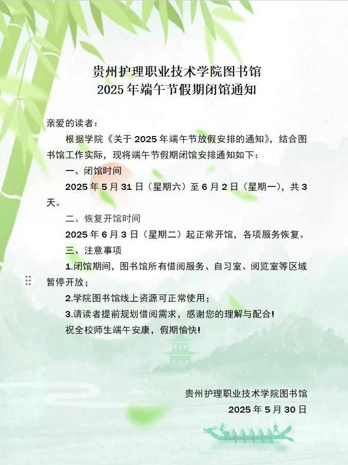 端午节放假闭馆通知